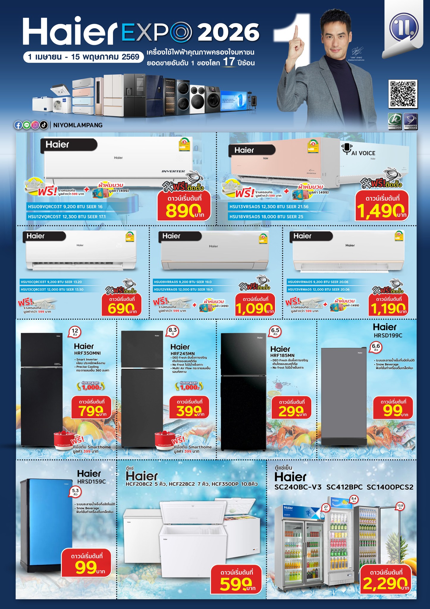 เครื่องใช้ไฟฟ้าคุณภาพครองใจมหาชน ขนขบวนสินค้าเครื่องใช้ไฟฟ้ามาให้เลือกมากมาย วันที่ 1 เมษายน - 15 พฤษภาคม 2569 ที่นิยมพานิชลำปาง